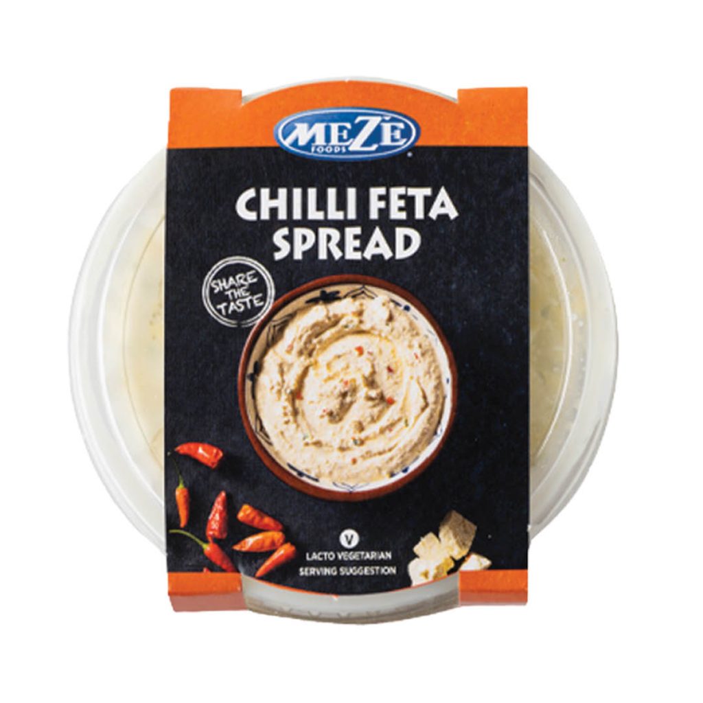 Apply a generous amount of Mezé Chilli Feta to each slice of bruschetta.