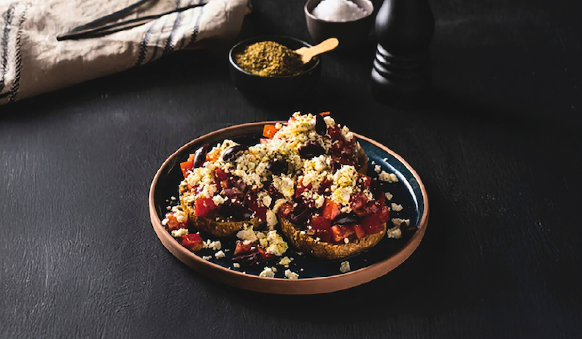 Rustic, refreshing and full of Mediterranean character – this Dakos Salad celebrates simple ingredients at their best. Crisp barley rusks topped with juicy tomatoes, briny olives and crumbled Mezé Feta come together with a drizzle of our world-class olive oil and a touch of oregano. It’s light, vibrant and perfect as a starter or shared snack on warm days.